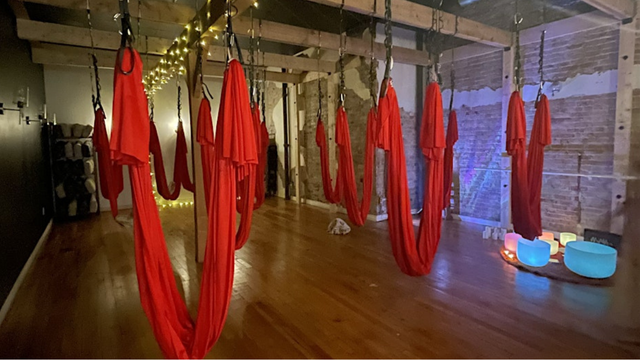 This is a restorative, meditative experience — no aerial or yoga experience required.