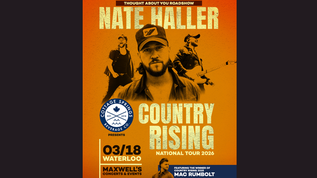 Nate Haller brings his first headlining Country Rising National Tour, presented by Cottage Springs, to Maxwell’s Concerts & Events in Waterloo on March 18. The national tour features Haller alongside 2025 Country Rising winner Mac Rumbolt, spotlighting the next wave of Canadian country talent.