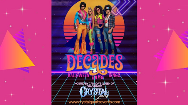 Description:Get ready to travel through time with Decades: Halloween Drag Bingo – a thrilling night of fierce performances, fabulous fashion, and frisky fun! 🎤🎉