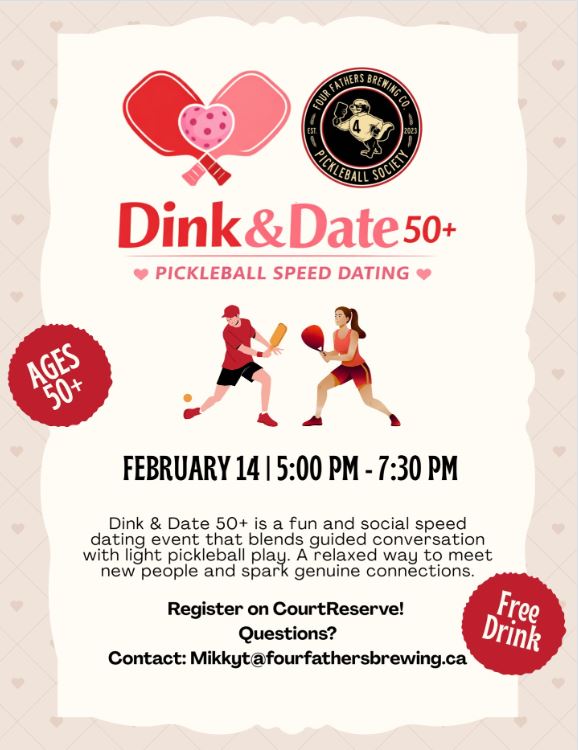 Looking to meet new people in a fun, relaxed way? Dink & Date 50+ combines guided speed dating with friendly pickleball play for an easygoing night of connection, laughs, and light competition.