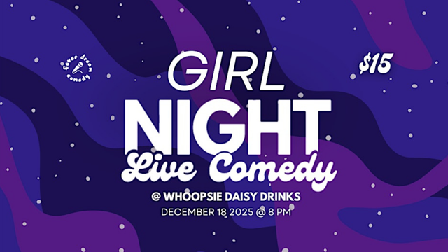 It’s our last Girl Night of the year! We are getting warm and cozy with a brand new line-up of girls from near and far, come to Whoopsie Daisy Drinks to make you laugh. e’ll close out the night as usual, with our Secrets Auction – bid for a cool, local prize with your juicy secrets and confessions! Bring your best secret and get it out of your system before the family holiday party… Your family will thank us 👌