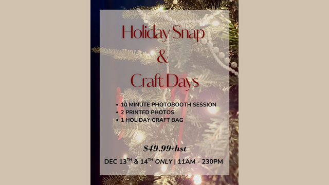 On December 13 & 14, families are invited to step into our festive set & capture their own holiday photos using a self-serve photobooth provided by Southland Wedding Co Limited. Each booking includes: 10mins to capture, 2 printed photos of your favourite shots, plus a Christmas craft kit for the kids!