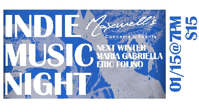 Back by popular demand! Indie Music Night at Maxwell's featuring shoegaze pop from "Next Winter", indie folk sounds from "Maria Gabriella" and the energetic indie rock tunes of "Eric Folino".