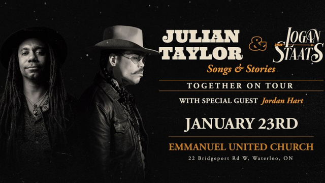 Critically acclaimed songwriters Julian Taylor and Logan Staats have joined forces to tour across Canada and bring you an incredible night of songs and stories. Presented in an acoustic format, each night promises musical surprises and heartfelt storytelling. Join the award winning recording artists as they share the stage for a powerful night of music.