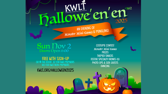 Dress your Halloween best for your chance to win two tickets to any show in the KWLT 2025–2026 season! The criteria our judges will be using is based on Creativity, Effort, and Accuracy.