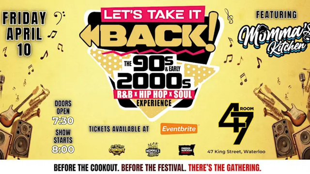 Expect smooth vocals, clever mashups, and nonstop hits from artists like TLC, Usher, Jay-Z, Lauryn Hill, Aaliyah, Justin Timberlake and more — all brought to life by Momma’s Kitchen, Kitchener’s premier live party band. Known for high-energy performances and crowd-favourite sing-along moments, the band blends Soul, R&B, Hip Hop, and classics into one unforgettable live experience.