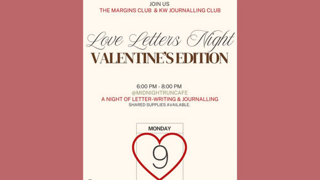 You’re invited to a no pressure journaling night with a Valentine’s theme! Write freely, or write a love letter to yourself or someone you care about (surrounded by others doing the same) ♡