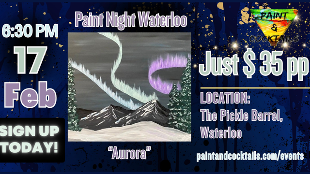 Join Paint & Cocktails at The Pickle Barrel, Waterloo, for paint night – where you and your friends get to enjoy some good food & maybe a drink, while picking up a brush!