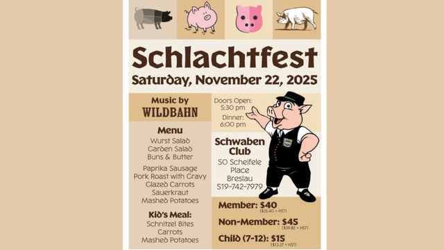- 🎟 Tickets now on sale NOW but only until Friday Nov 14th – 5pm! Call the club for tickets at 519-742-7979.