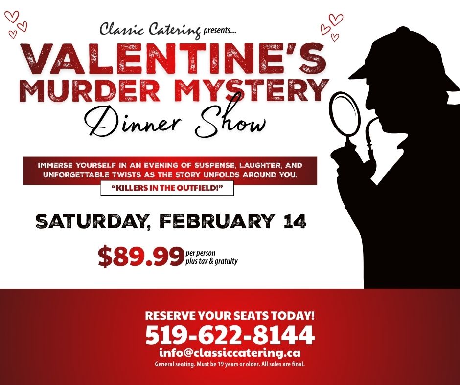 Then indulge in a delicious dinner and dessert, while you become involved in a suspenseful murder mystery filled with twists, laughs, and unforgettable moments.