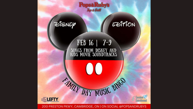 Come join us on Family Day for Music Bingo Disney & Kid Movie Soundtracks that will be fun for all ages!
