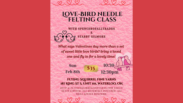 Join us for a Love-Bird Needle Felting Class with Spencer of All Trades and Stabby Gilmore!