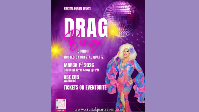 A hilarious drag bingo brunch with Crystal Quartz—glitz & glam prizes, big laughs, and brunch vibes at Abe Erb.