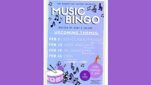 Join us for an amazing Music Bingo Trivia Night featuring dance songs of the 90's!