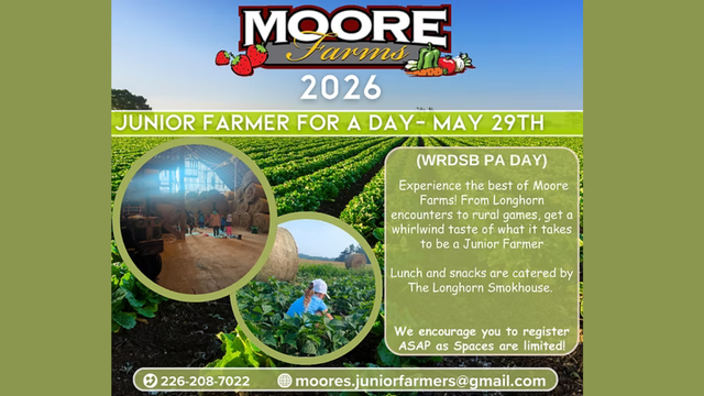 Join us for the WRDSB PA Day at Moore Farms where kids can be a farmer for a day! |
