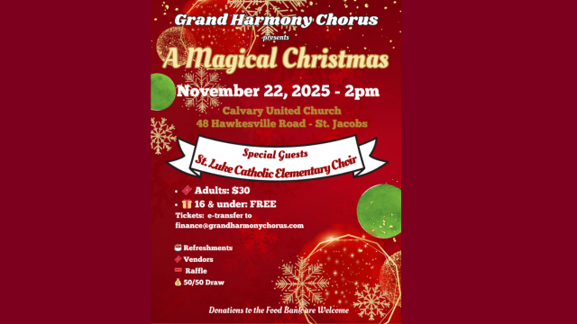 Join Grand Harmony Chorus for A Magical Christmas—a festive show of holiday harmonies, local vendors, and heartwarming music with guests St. Luke Catholic Elementary Choir.
