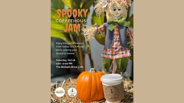 Enjoy live music, warm drinks, and cozy vibes at The Bishop’s Brew Café. Featuring Yellow Brick Music instructors. October 18 at 1 PM in Hespeler!