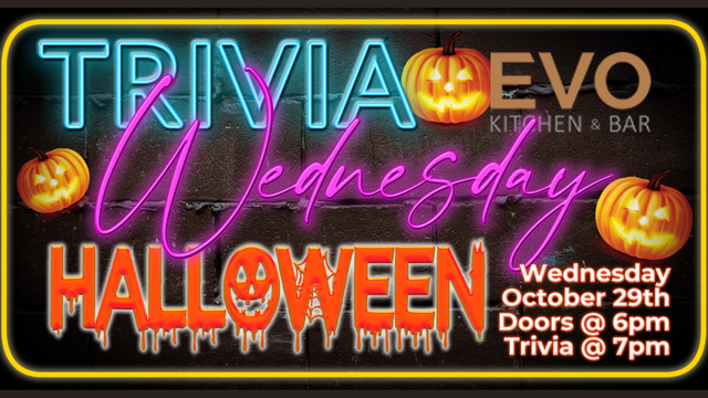 🎃 Spooky smarts await! Join us October 22, 7 PM at EVO Kitchen & Bar for Halloween Trivia—costumes, prizes, and bragging rights. Free, fun, upstairs! 👻