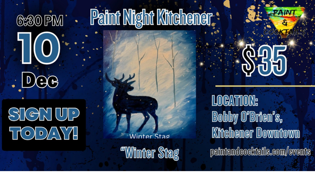 Join us for a fun and relaxing evening of painting "Let's get Festive" at Montana's BBQ and Bar in Cambridge, ON.