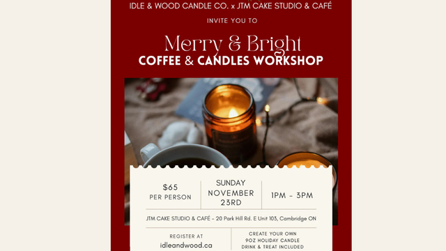 Join us on SUNDAY, NOVEMBER 23RD for a festive, hands-on evening of creativity and connection at JTM Cake Studio & Café!
