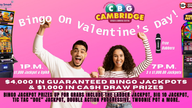 Whether you're celebrating Valentine's Day with friends, family, or out for date night, the Cambridge Bingo & Gaming Centre has you covered!