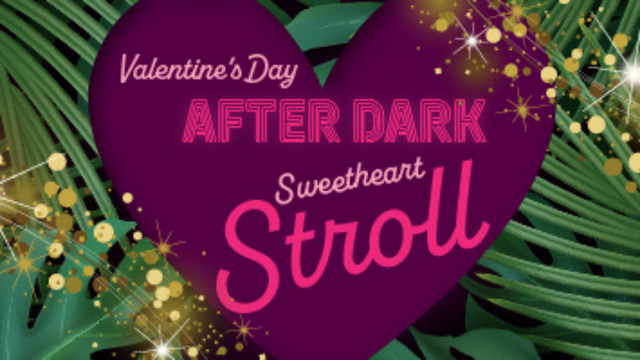 Timed, after-hours Valentine’s event in a warm tropical greenhouse with twinkle lights, live instrumental music, sparkling non-alcoholic champagne, complimentary couple photos, and limited capacity.