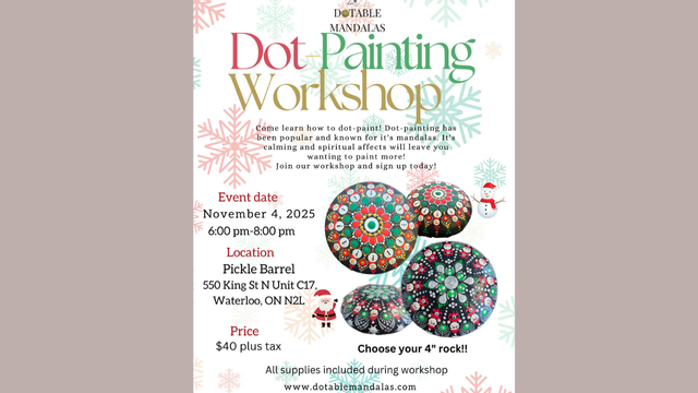 Get into the festive holiday spirit with our in-person dot-painting workshop! This fun and relaxing event is perfect for beginners and experienced painters alike.