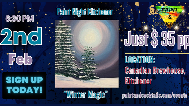Join us for a fun and relaxing evening of painting “Winter Sky” at the Boathouse in Kitchener.