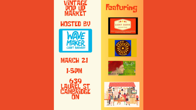 Join us for our Vintage Pop Up Market at 639 Laurel St, Cambridge on Saturday March 21st from 1-5pm!