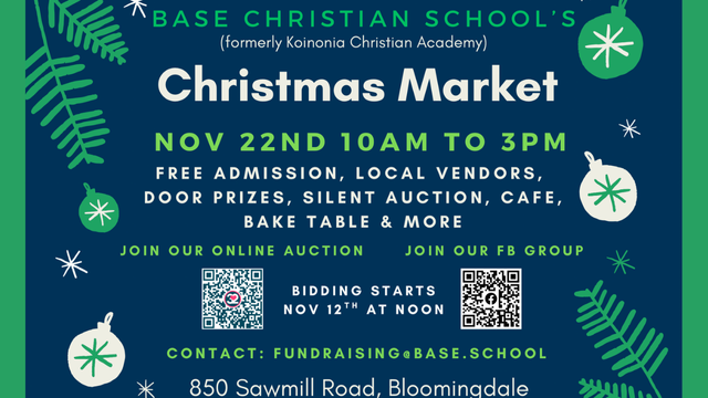 Base Christian School is hosting their 4th annual Christmas Market fundraiser! (Formerly Koinonia Christian Academy)