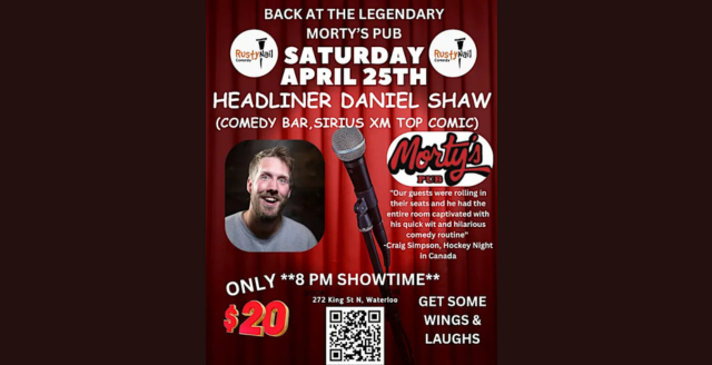Rusty Nail Comedy brings the best stand up comedians to waterloo region. At Morty's Pub Saturday April 25th @ Morty's Pub Waterloo.