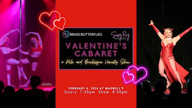 Join Brass Butterflies and friends for a Valentine's themed cabaret show featuring pole, burlesque, heels, drag, singing, comedy, and more!