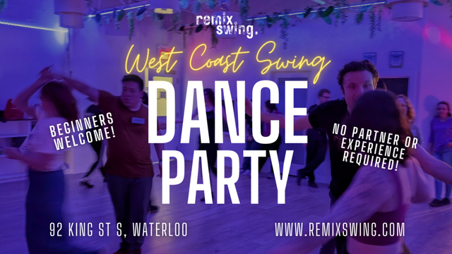 West Coast Swing Dance Party! Join us for a night of social dancing including an Intro to West Coast Swing dance class for beginners!