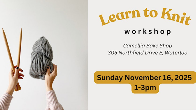 Join us for a fun 2 hour workshop on the basics of knitting at a cozy cafe in Waterloo.