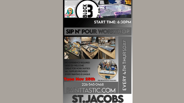 Explore Acrylic Pour Painting! This workshop lets you pour and manipulate specially formulated paints to create unique, abstract designs. No experience required—just bring your creativity!