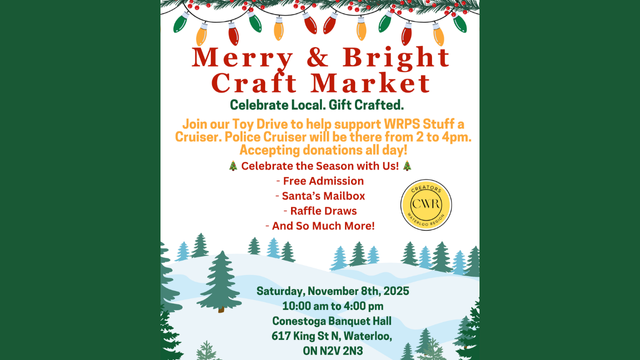 ![]() Join us at the Merry & Bright Craft Market, Nov 8, 2025, Conestoga Banquet Hall, Waterloo! Free admission, local makers, raffle draws, and holiday cheer. |