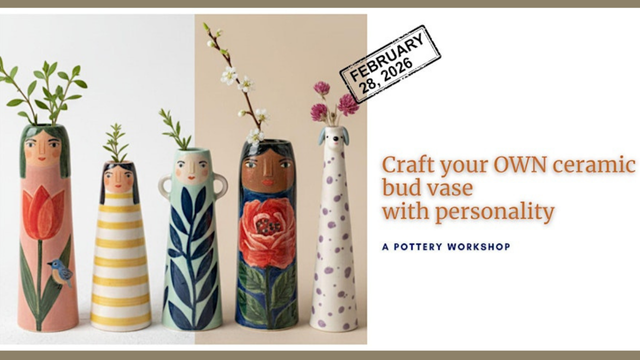 Get creative in person and craft your own unique ceramic Bud Vase! Clay, Coffee & Company: A Character Bud Vase Workshop - turn a simple lump of clay into your new best friend.