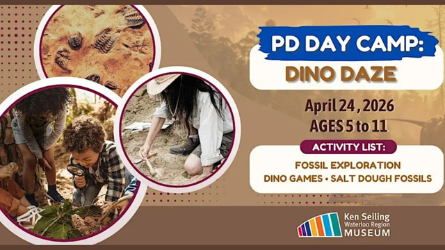 Dig up a day of fun and fossils! Join us in April at Ken Seiling Waterloo Region Museum for a Dino-mite day at PD Day Camp!